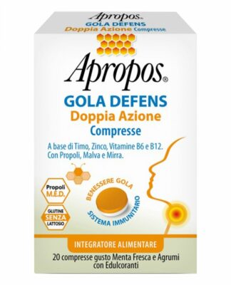 Agenti di carica: sorbitolo, xilitolo; aromi, Propoli e.s. tit. 12 % polifenoli (Propolis, resina); stabilizzante: idrossi-propil-metilcellulosa; malva polvere (Malva sylvestris L., foglie); timo e.i.a. (Thymus vulgaris, foglie); acidificante: acido citrico; mirra e.s. [Commiphora myrrha (Nees) Engl. (syn. C. molmol, oleum gum resin)]; agenti antiagglomeranti: sali di magnesio degli acidi grassi, carbossimetilcellulosa sodica reticolata; zinco L-pidolato (Pido-Zinc); amido di mais; coloranti: ossidi di fero; maltodestrine; edulcoranti: acesulfame K, sucralosio; vitamina B12 (cianocobalamina), vitamina B6 (cloridrato di piridossina), concentrato colorante di cartamo.