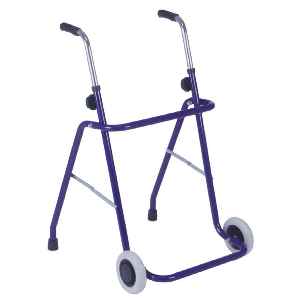 Rollator pieghevole con due ruote anteriori fisse di cm. 15 e due puntali posteriori.